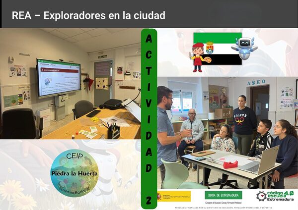 El pasado viernes, continuamos en nuestro centro el programa Código Escuela 4.0. El REA (Recurso Educativo Abierto) seleccionado es Exploradores en la ciudad, donde el alumnado se convierte en exploradores diseñando y presentando su ciudad ideal, apoyándose en la Agenda 2030 de los ODS y aspirando a ser parte de una revista de viajes. Nos ha parecido muy útil y relacionado para nuestro proyecto de Red de Escuelas Emprendedoras y por eso lo hemos elegido, ya que también se realiza una guía promocionando nuestro pueblo como en STEAM-ulamos Extremadura.